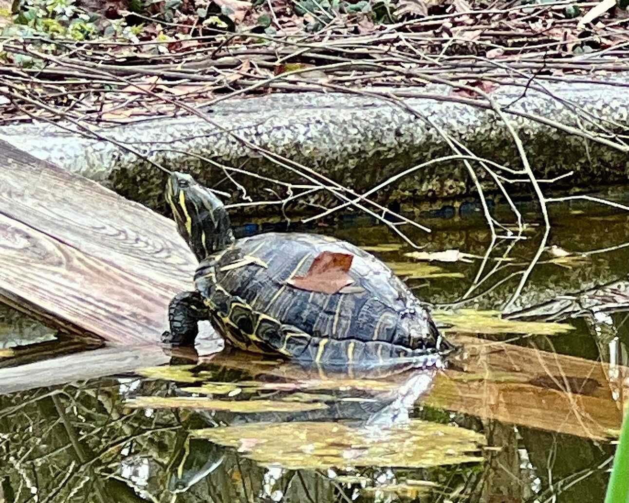 Our pool turtles have emerged from brumation, the reptile version of hibernation. It's a sure sign of spring — or at least a temporary spring — at the Wood Backyard.